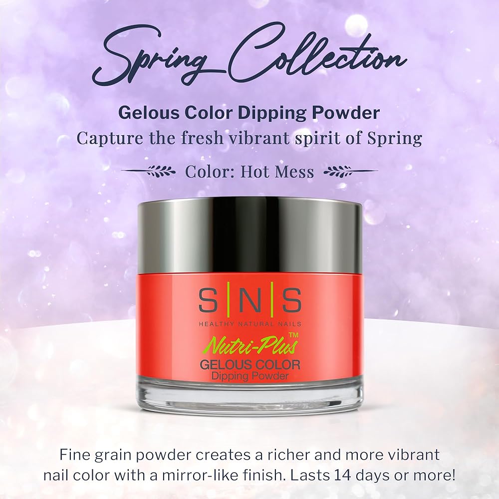 SNS Nail Dip Powder, Gelous Color Dipping Powder - Hot Mess (Red/Orange, Cream) - Long-Lasting Dip Nail Color Lasts 14 Days - Low-Odor & No UV Lamp Required - 1 OZ