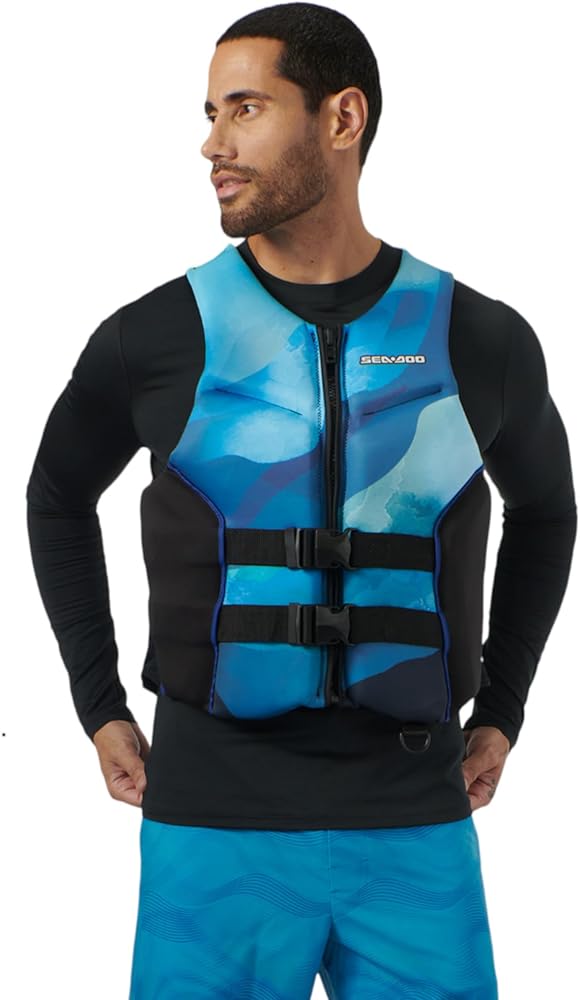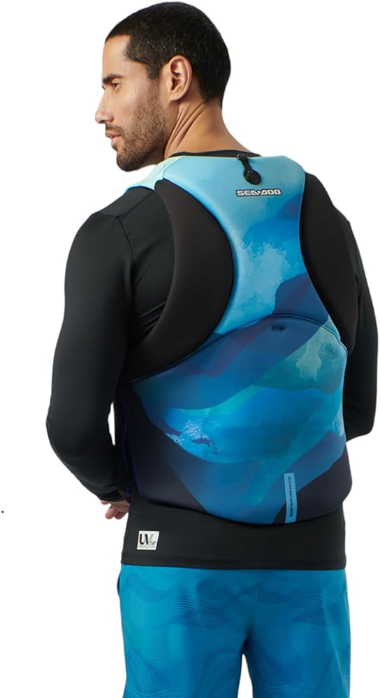 Breathtaking sunsets on the lake are even better when you're sporting this PWC Life Jacket. The environmentally-friendly Sea-Doo Airflow Sunset Edition PFD Life Jacket is designed with breathability and ease of motion in mind. The Air Flow system with EVA molding keeps the jacket away from your skin while the mesh panel drains excess water out and dries quickly. Casting a line or paddling a boat, among other water activities are easy thanks to the large-cut armholes and stretch side panels. Add in ecoprene material and 100% PVC-free Gaia foam interior construction, and you have the Coast Guard-approved life jacket you've been searching for.