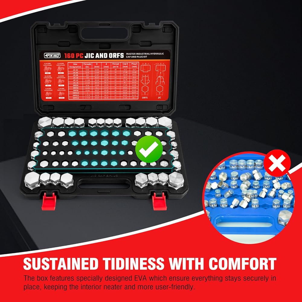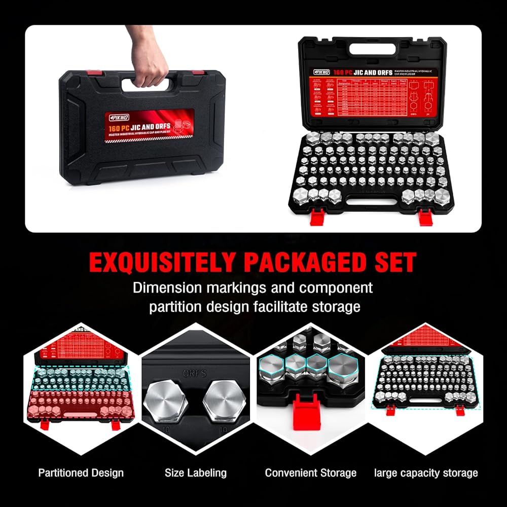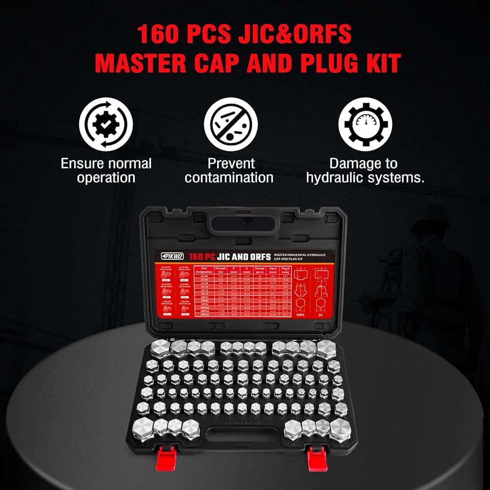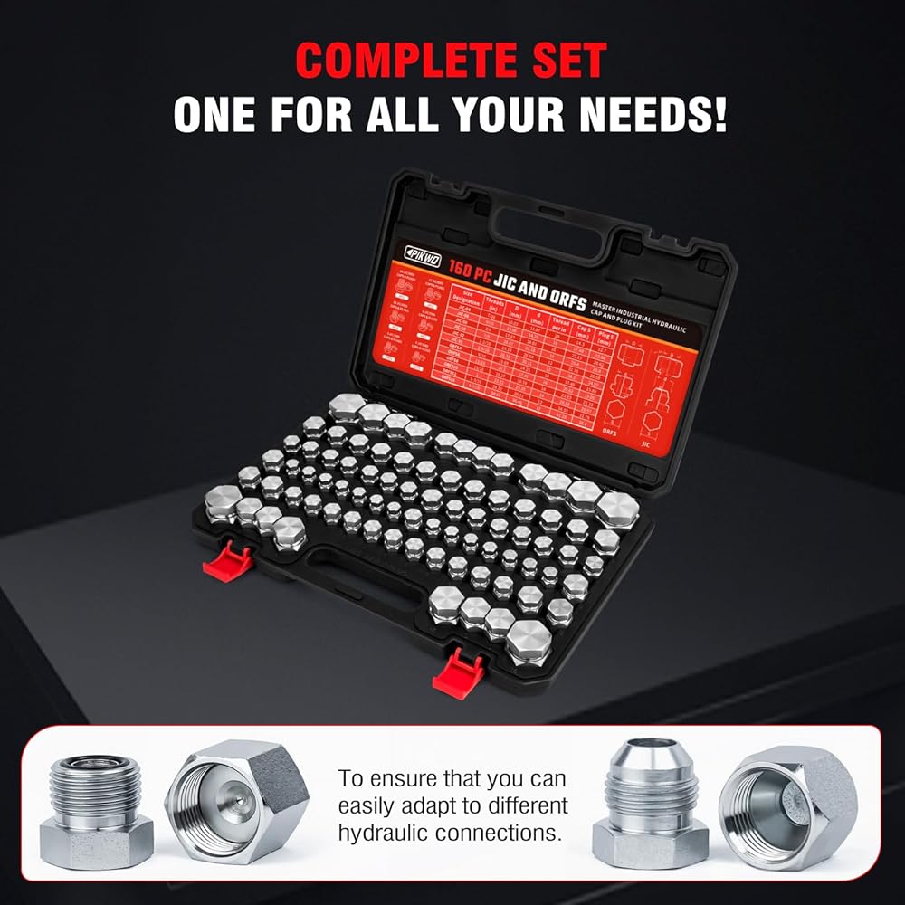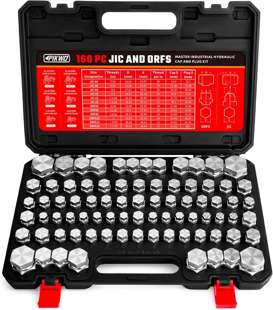 160 PC JIC and ORFS Master Industrial Hydraulic Cap and Plug Hose Tube and Pipe Fitting Kit Cap and Plug Kit Precision Threading in ORFS and 37° Dash Sizes 4 6 8 10 12 16