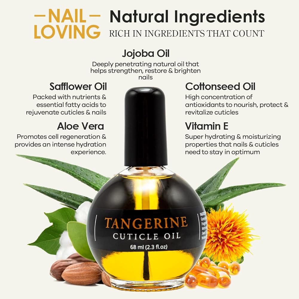 Ellie Chase Repairing Cuticle Oil For Nails 2.3 Fl Oz - Tangerine Scented – Nail Strengthener, Cuticle Softener, Nail Growth Treatment, Nail Hardener, Jojoba Oil for Nails, Damaged Nail Repair