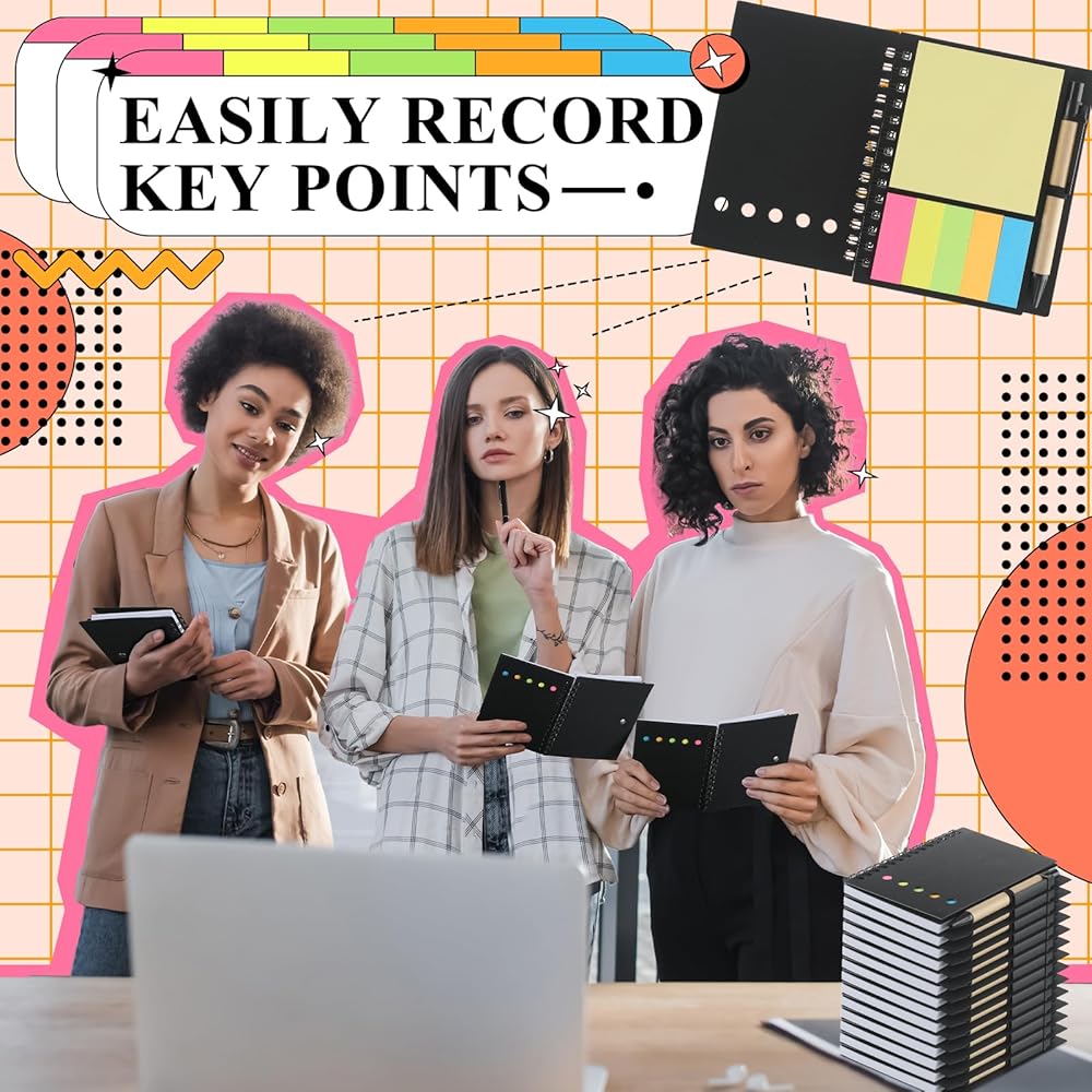 • Loaded with Additional Features: each of our black spiral pocket notebooks is packed with 70 lined pages, 30 yellow and 30 pink sticky notes, and 150 index labels; These additional features provide users with the flexibility to segment their notes and reach specific sections in no time