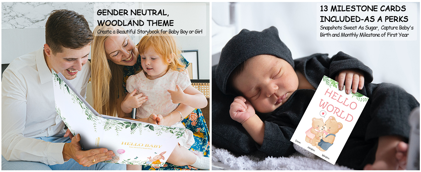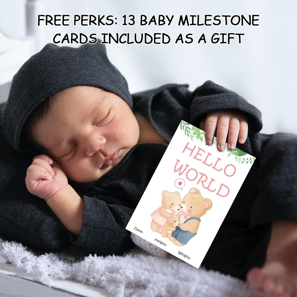 Milestone Cards Included - As a perks, this baby book comes with 13 beautifully neutral coloring designed milestone cards, each card is designed with a unique theme and has space to write in your baby's growth and development. You can use these adorable photo props to capture baby's birth and monthly milestone of first year. Snapshots sweet as sugar to add to your baby memory book or to send to family & friends.