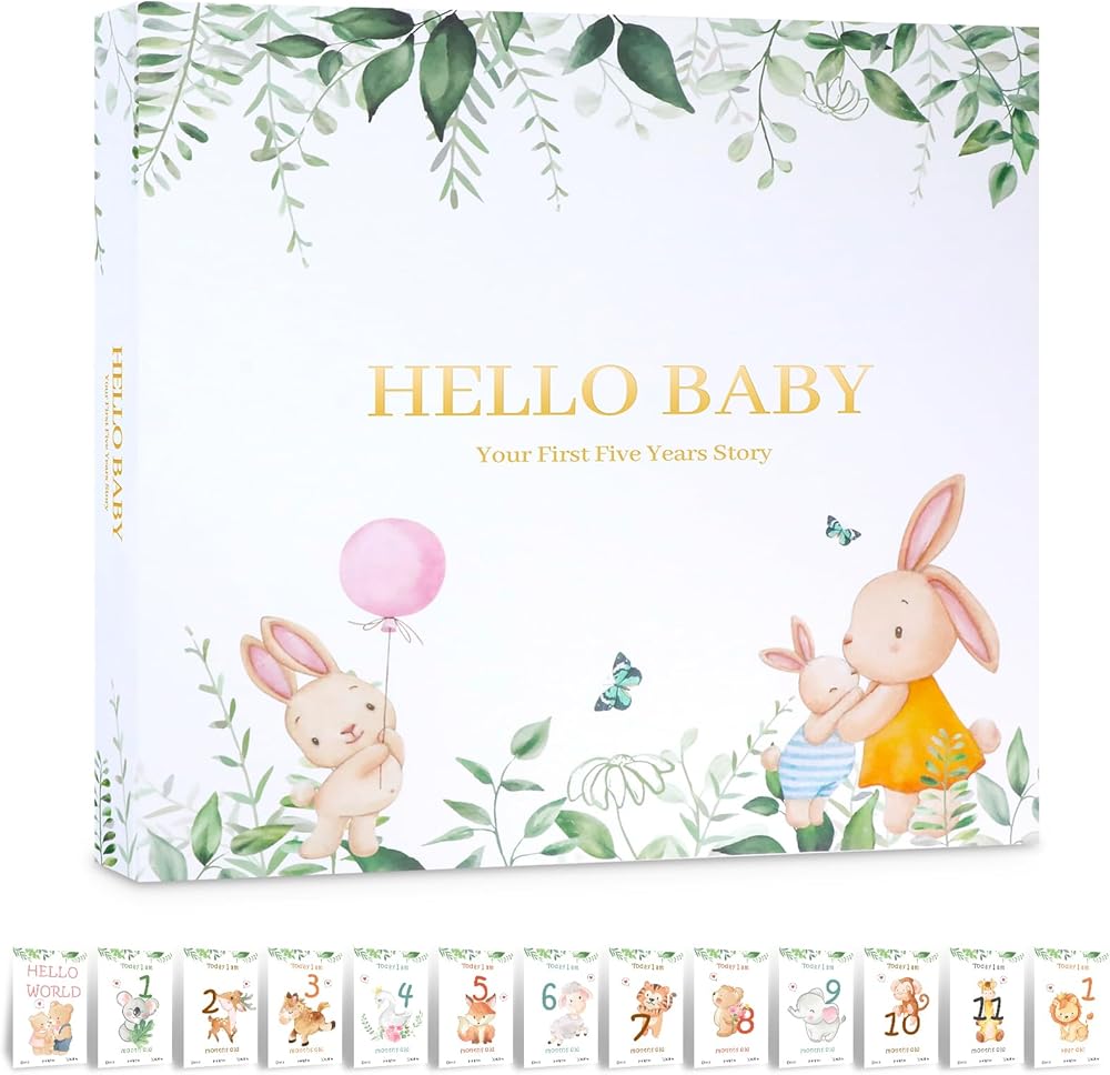 Baby Memory Book Album: First 5 Year Baby Books for Baby Boy or Girl,Gender Neutral Woodland Scrapbook Keepsake, Journal and Photo Album,Baby Shower Gifts (13 Milestone Cards Included)