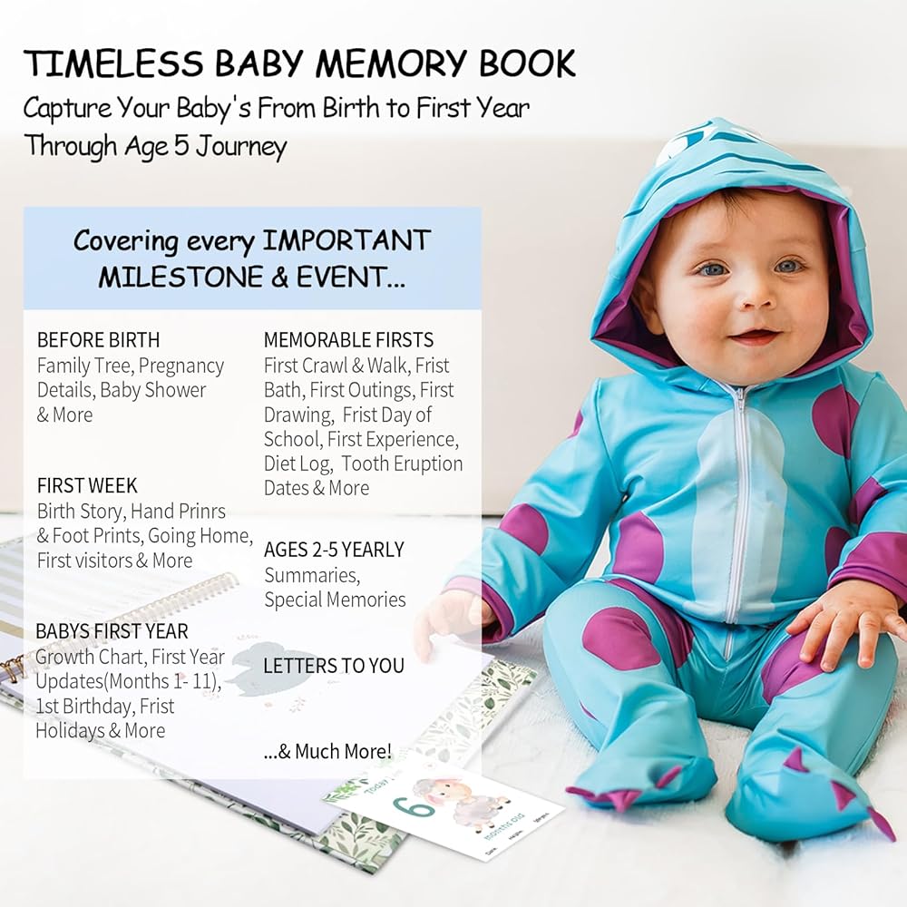 Baby Book For Lasting Memories: It's a combination journal, album, and record book, from birth to baby's first year through age 5, capture the every major milestone in the growth of baby's boy or girl, helps to record, store and share precious memories. Such a meaningful baby book keepsake, a newborn must have.