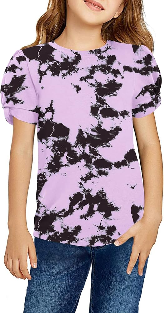 Features: Girls summer tops, classic round neck design, decorated with chic twist sleeves, adding a playful and cute element to the top. The loose fit provides a comfortable fit for ease of wear and movement.