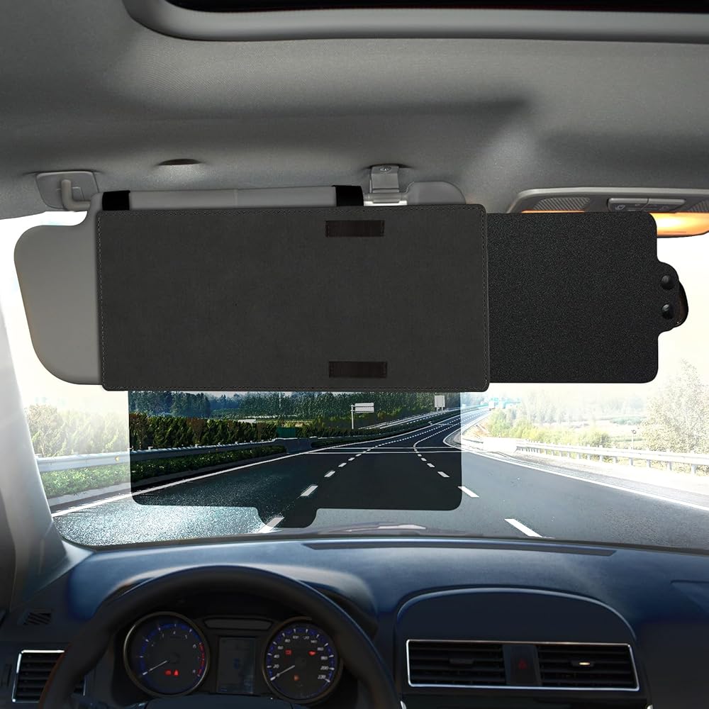[Anti-Glare] : The polarized car visor extender can effectively block the ultraviolet rays in the sun, reducing the discomfort of long-term exposure to ultraviolet rays on the facial skin. It provides a great degree of protection for drivers or front seat passengers who are susceptible to sunlight. By using this car visor, you can reduce UV damage to your eyes and skin.