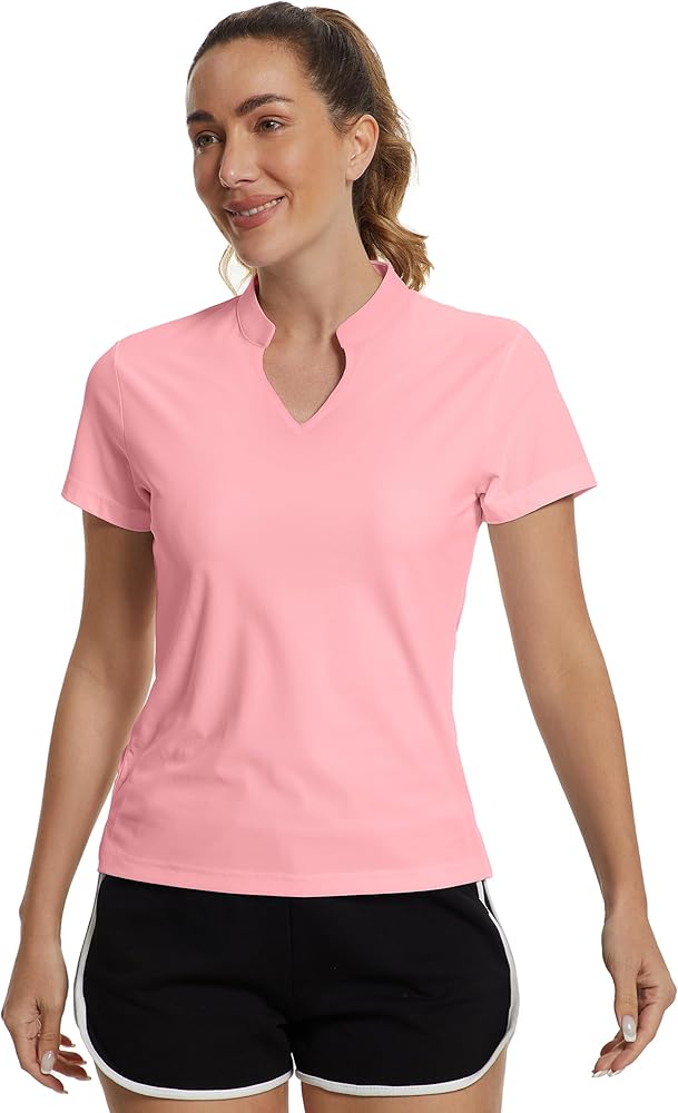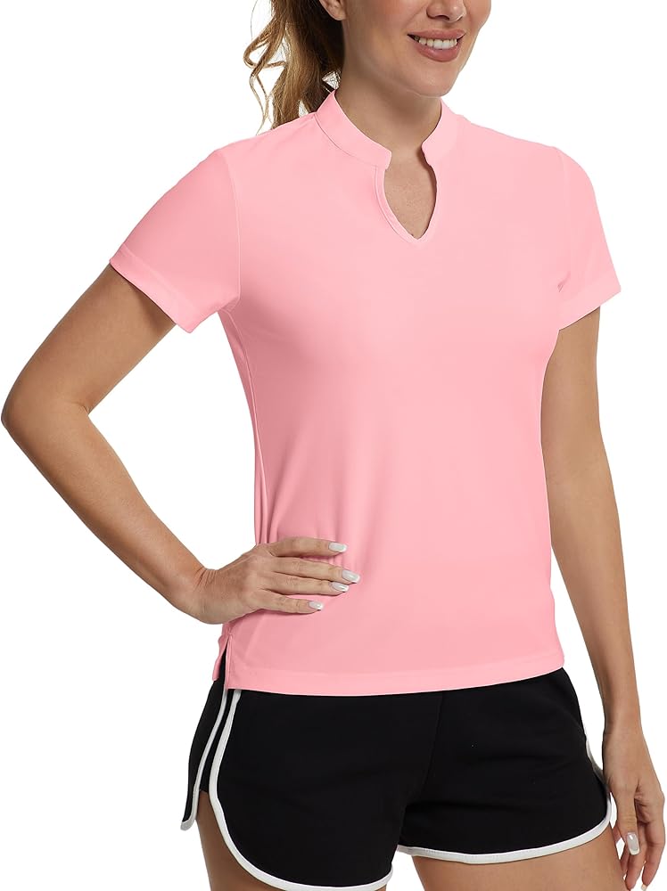 【Comfortable & Skin-friendly】: Perfect your practice in comfort and style. This short-sleeved polo top boasts a quick-dry, breathable, and stretchy fabric, so you can move with ease and stay comfortable throughout your entire workout.