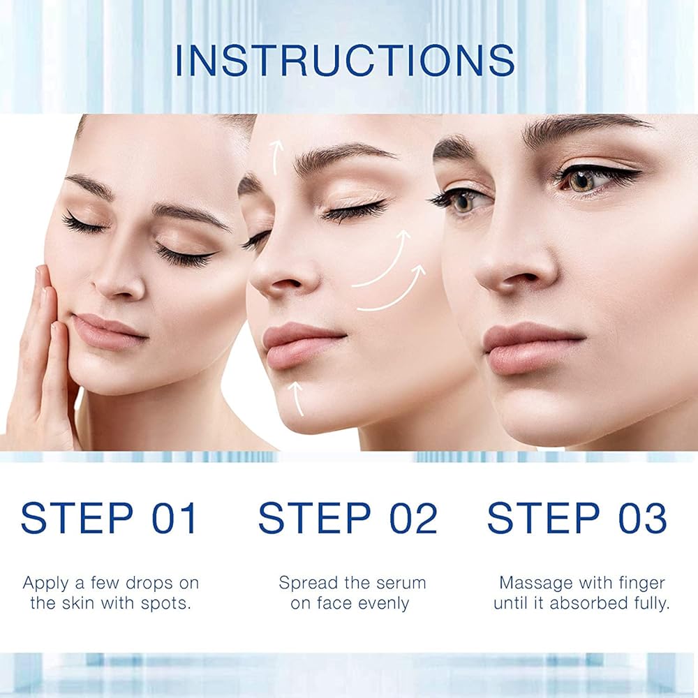 Directions for Use. Gently clean and dry the area, then apply and rub dark spot corrector into the skin until hyperpigmentation treatment completely absorbed. For best results, please insist on using it once or twice a day and you will see the effective results within 4 weeks.
