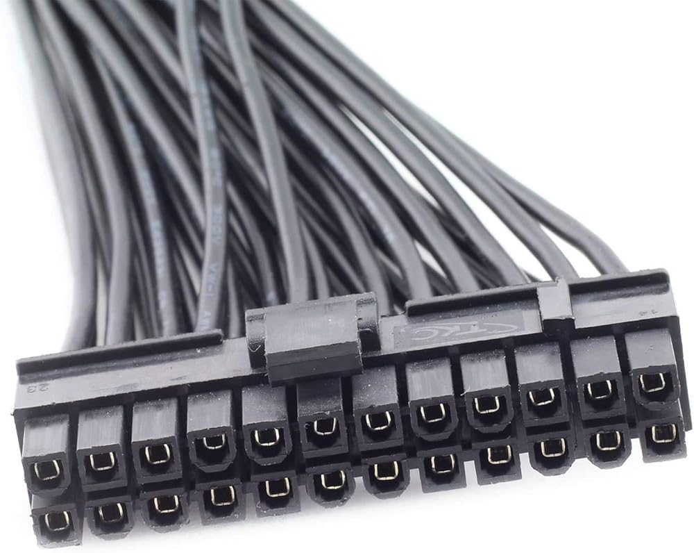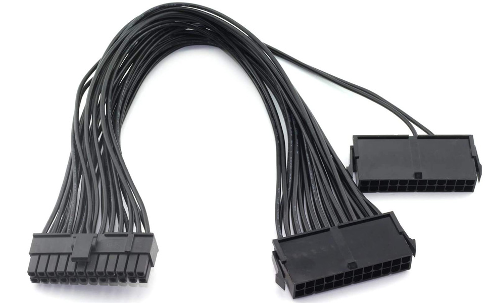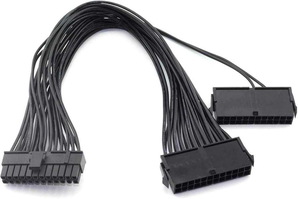 Compatible with 24 pin and 20+4 pin ATX motherboards (1x 24 pin(20+4) male port and 2x 24 pin female ports); Designed for intense Gamining and BitCoin Mining; Material: 18AWG . Length: main cable 12inches + secondary cable 12inches (30cm+30cm);