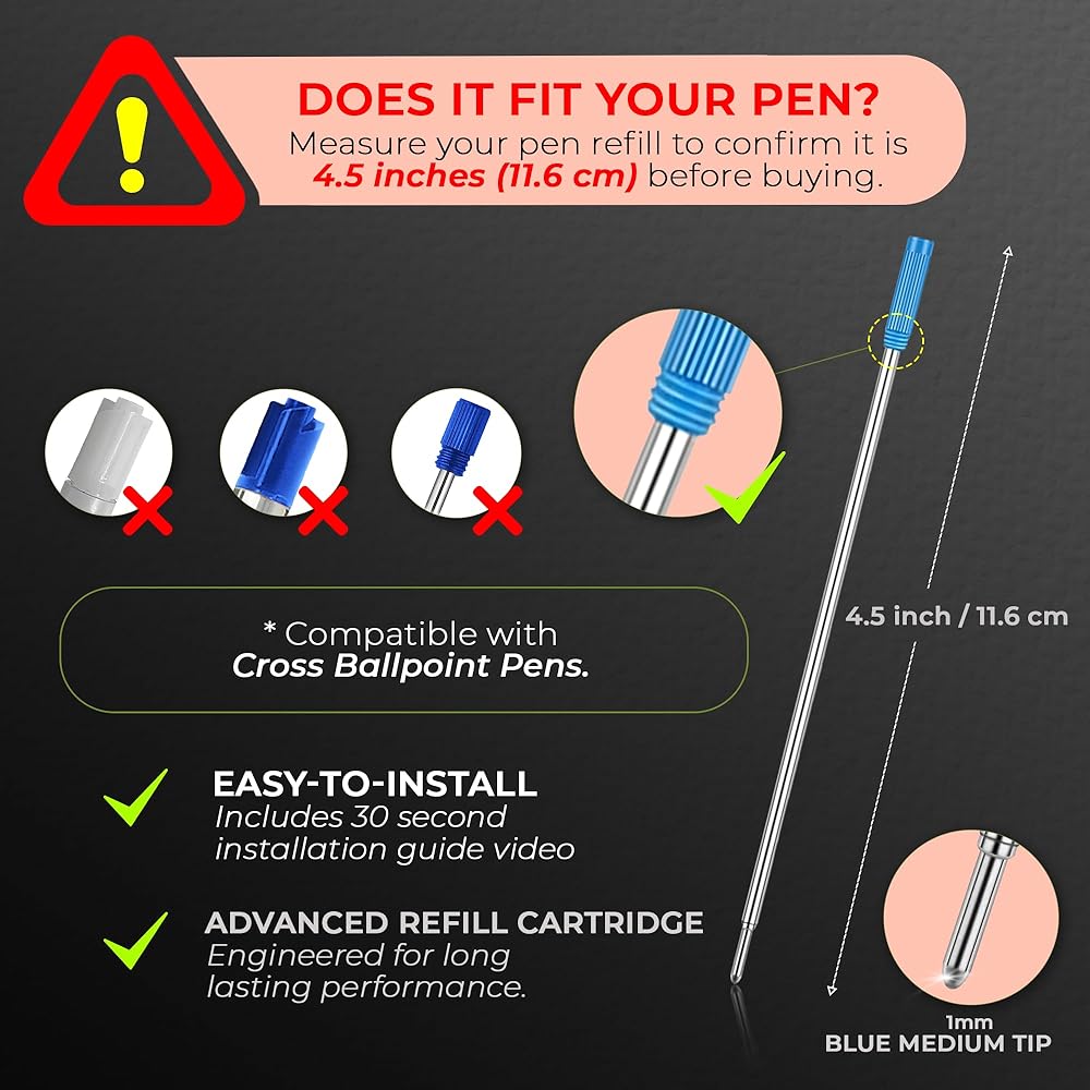 MEASURE TWICE AND REFILL ONCE! Double check that your existing pen cartridge is 4.5 inches long (116mm) to avoid any disappointment.