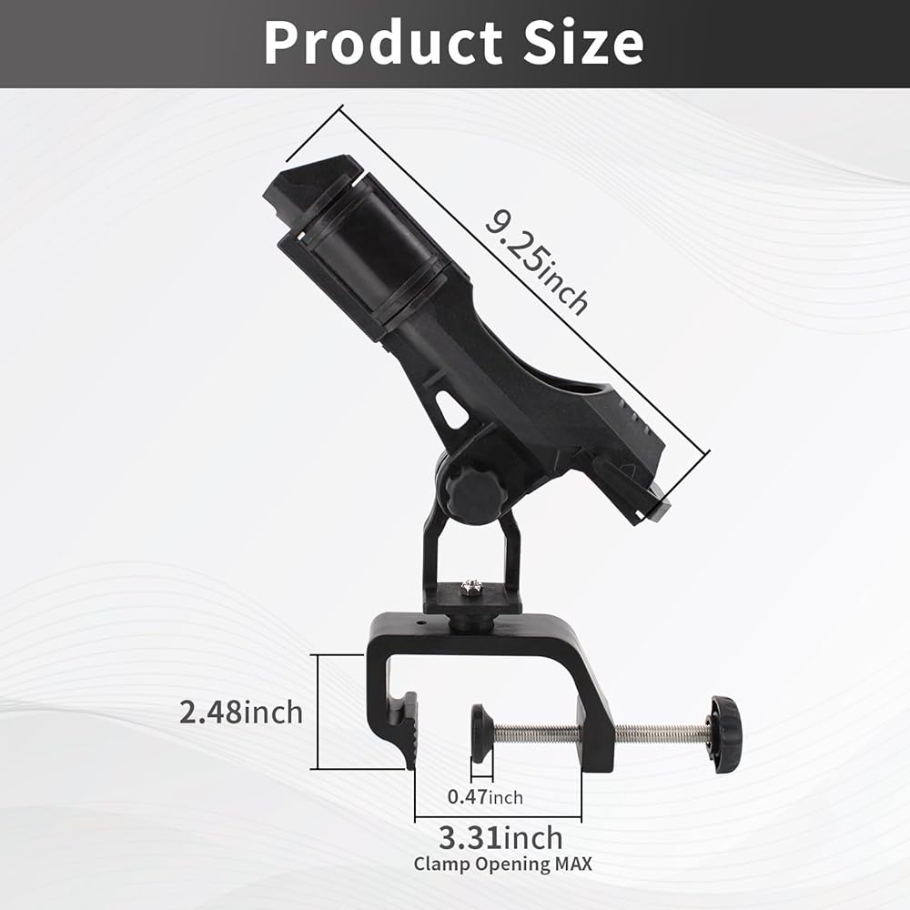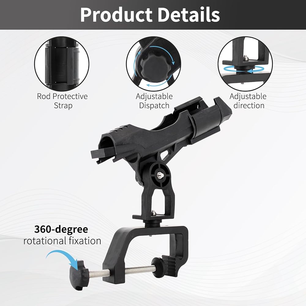 EASY TO INSTALL: With a rotatable clamp base, this fishing rod holder can be easily fixed on objects without the need for drilling. You can choose between surface mount or rail mount installation options to place it in your preferred position.
