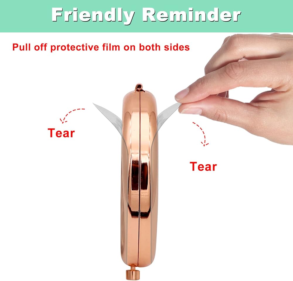 Portable Compact Makeup Mirror:1 side is a standard mirror to help ensure that your lipstick, eyeliner and hair are in perfect condition and the other side is a magnifying mirror, an exceptionally clear image without distortion. Make sure the girl is getting the perfect look, and also allow her to check the tiniest details of your makeup.Ideal for daily use.
