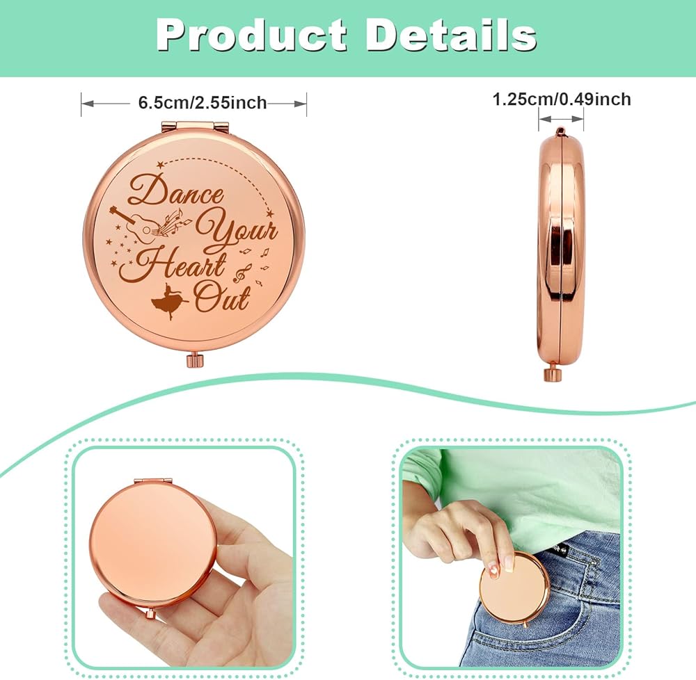 Dance Lovers Gift Ideas:Let this encouragement dancer gifts compact makeup mirror brings the receiver strength, love and hope.Take pride in how far you've come. It is a perfect gift for dancer or anyone who likes dancing. Show your love for dance or for your favorite dancer.