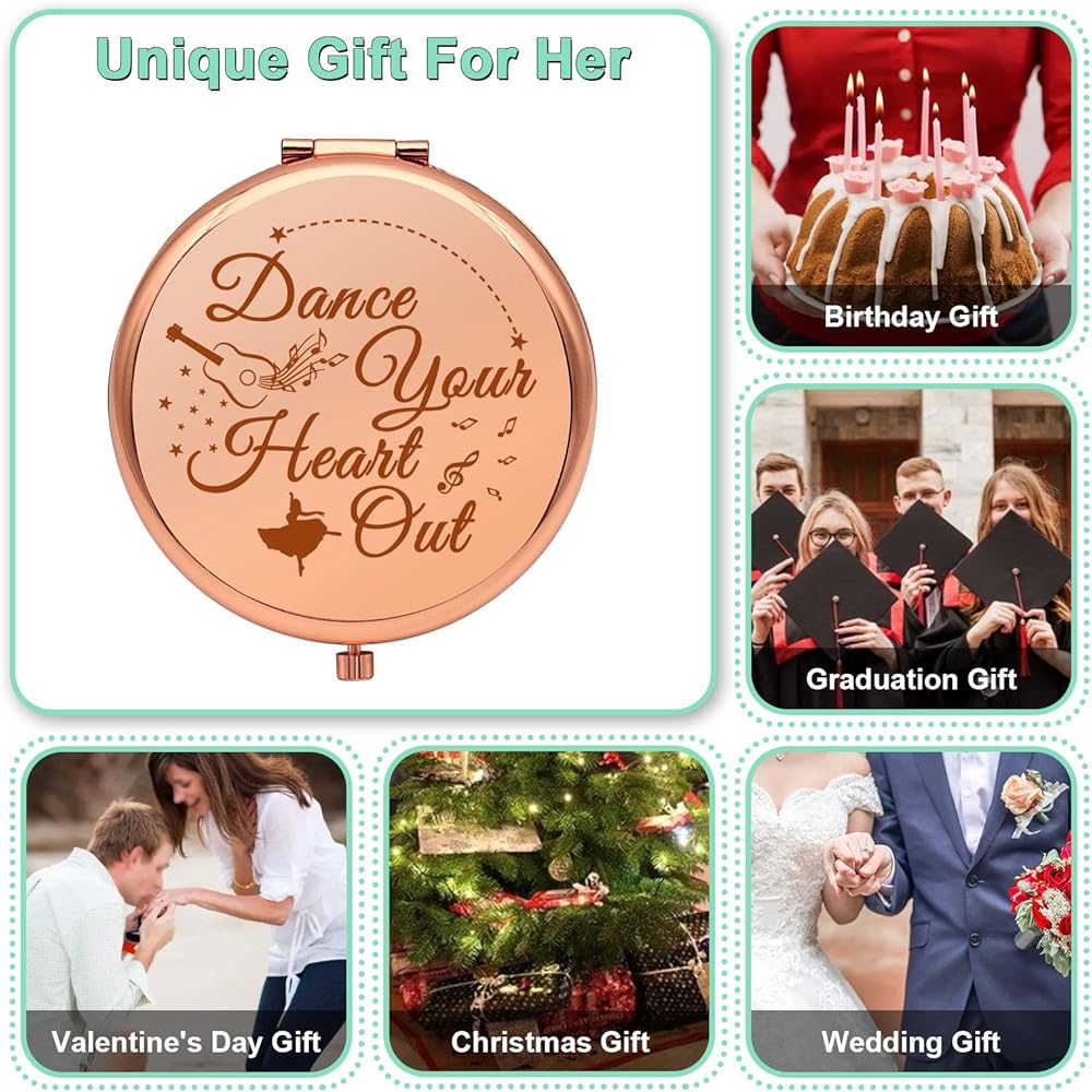 Dancing Gifts for Teen Girls:Gifts for dance instructors,beautiful dancer travel makeup mirror to give as a gift at the dance recital.Perfect as a birthday gift, Christmas gift, dance competition gifts, reward gifts, Halloween, Thanksgiving, anniversary gifts,or simply as a thank you! This funny inexpensive gift idea makes the perfect choice for putting a smile on someone's face.