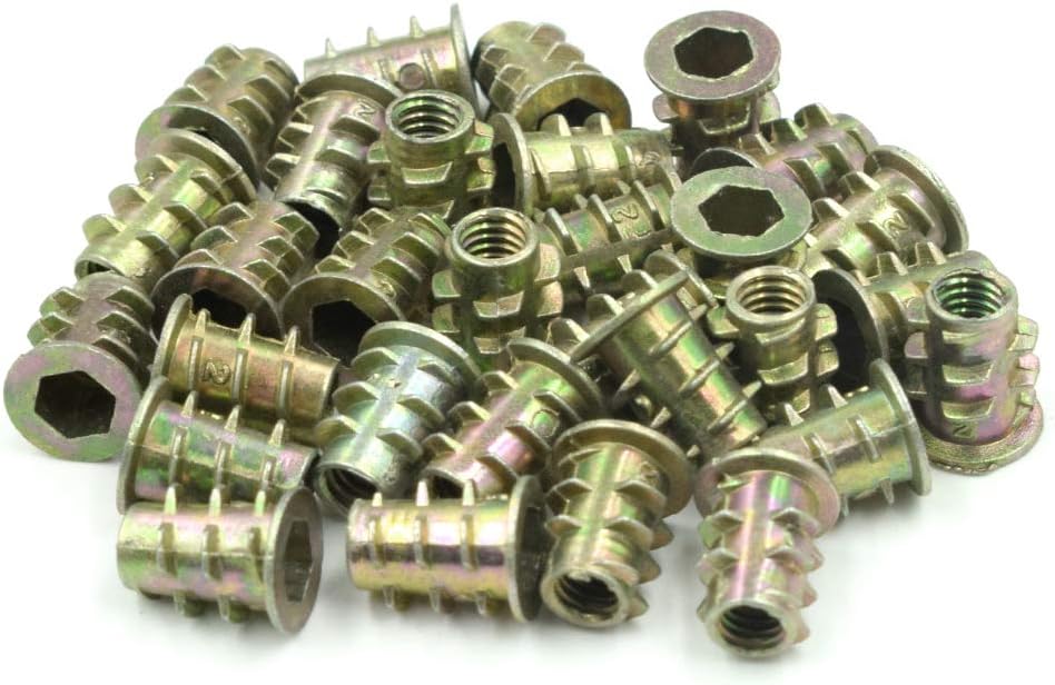 2.Ideal for use in materials such as pine, plywood, composition board, and MDF, Hex Drive inserts feature tapered external threads which resist pull out caused by vibration.