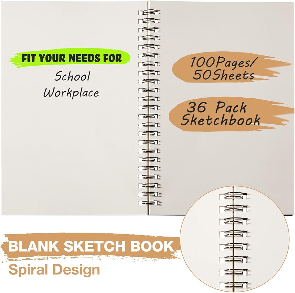 Epakh 36 Pack Blank Spiral Notebook Unlined Notebook Bulk A5 Soft Cover Students Sketchpads Memo Notepad for Drawing Art Back to School Gifts 100 Pages/ 50 Sheets, 8.3 x 5.5 Inches(Black)