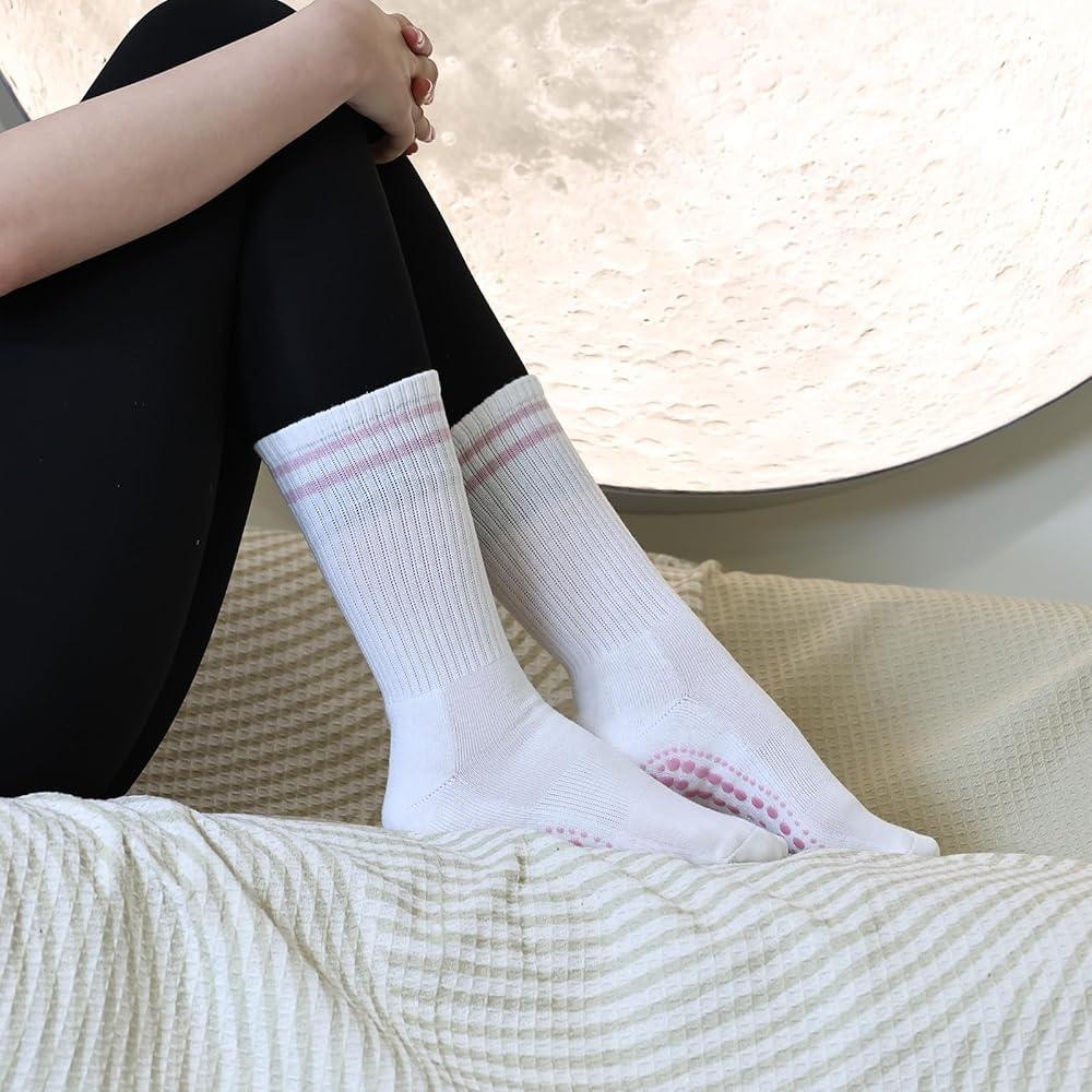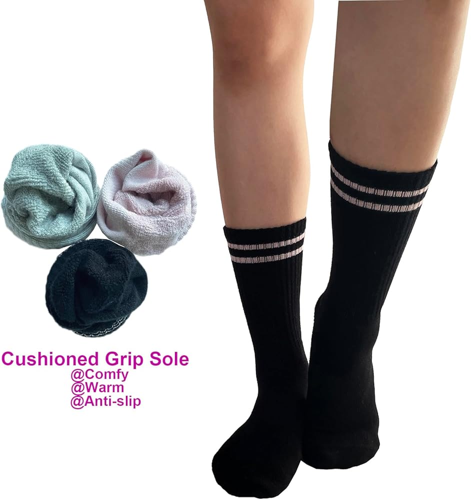 ✅ One Size: Fits most Small/Medium size(women's shoe size 6-9). The crew grip socks with good durability and stretchy, suitable for ladies and girls.