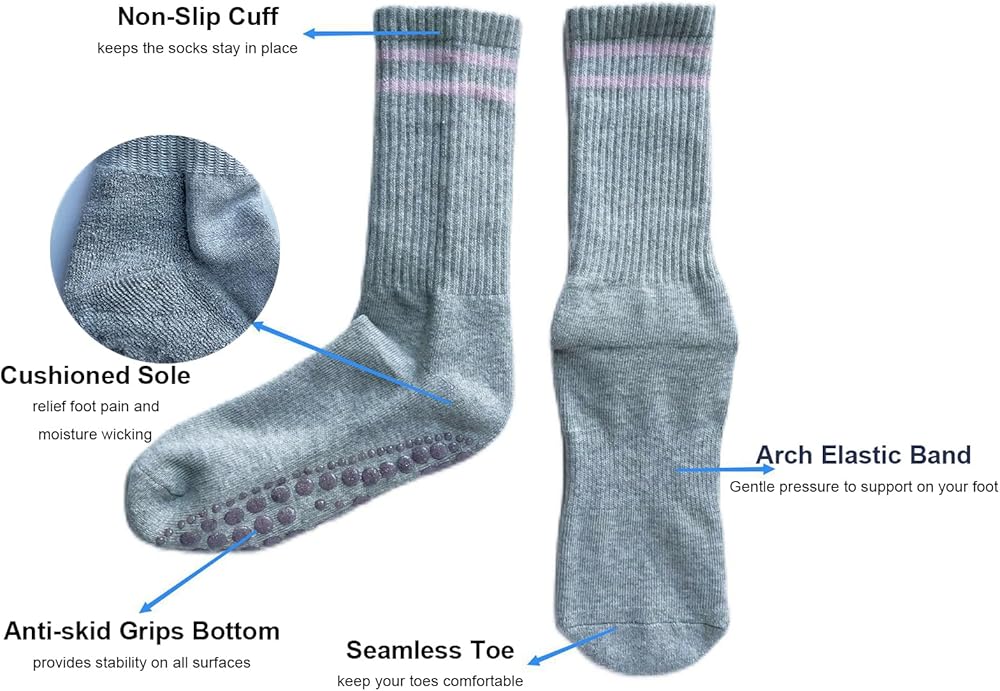 ✅Material: The Crew Grip Socks made with soft cotton, spandex, silicone grips. Good stretchy, breathable and comfortable.