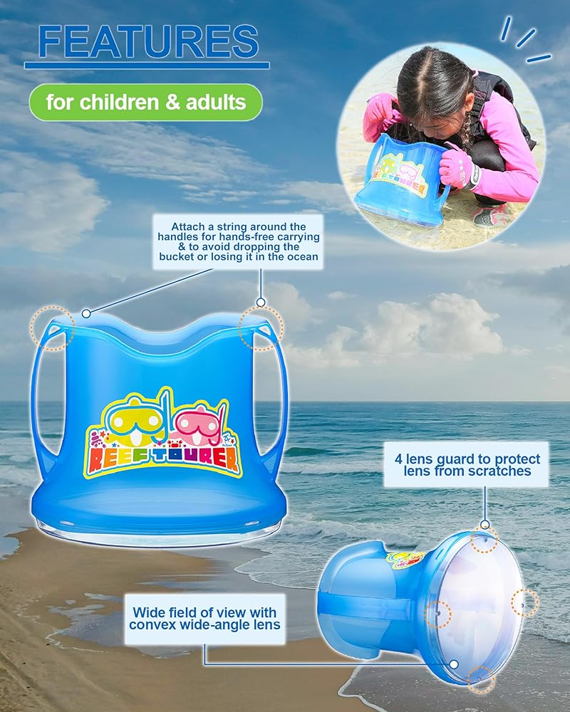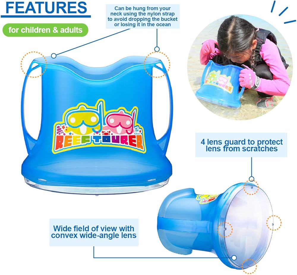 - Bucket with a wide view scope to easily see under the surface of the water