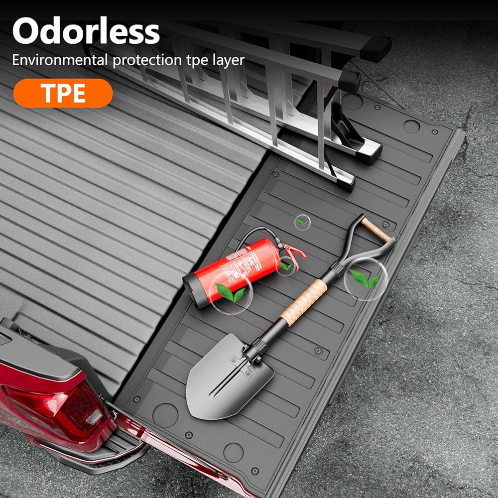 High-Quality Material:The truck bed liner is made of high quality TPE material,it is scratch-resistant,durable,and has no bad smell.Even if you fold it hard,it will not be easily spoiled.Our cargo liner can withstand all kinds of extreme weather,such as heavy rain or snowstorm days,etc.You can also clean the TPE mats easily with water.