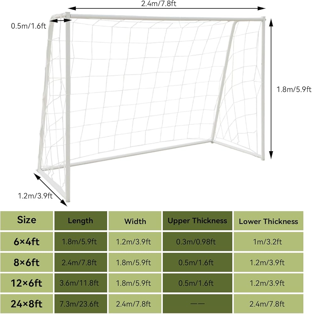 Multiple Sizes: 6 x 4 foot; 8 x 6 foot; 12 x 6 foot; 24 x 8 foot, this soccer netting makes a great soccer goal for the backyard, or a great kids' soccer goal that inspires young athletes to practice and score.