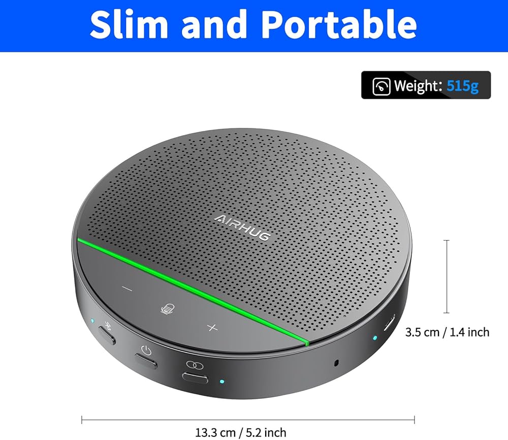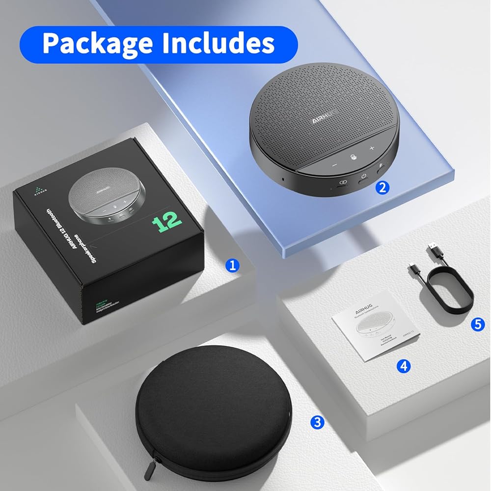 【Powerful Compatibility】- Quick and easy to connect mobile phone,tablet, PC and laptop notebook etc via bluetooth or via USB C cable no need any extra driver.The USB speakerphone supports plug and play for any operating system including Windows 7, 8, 10, 11, Mac OS system,original android system and Linux system. AIRHUG 12 conference speakerphone is compatible with Zoom,Skype,MicrosoftsTeams,Google meeting,Webex,Facetime, and most of the online meeting apps.