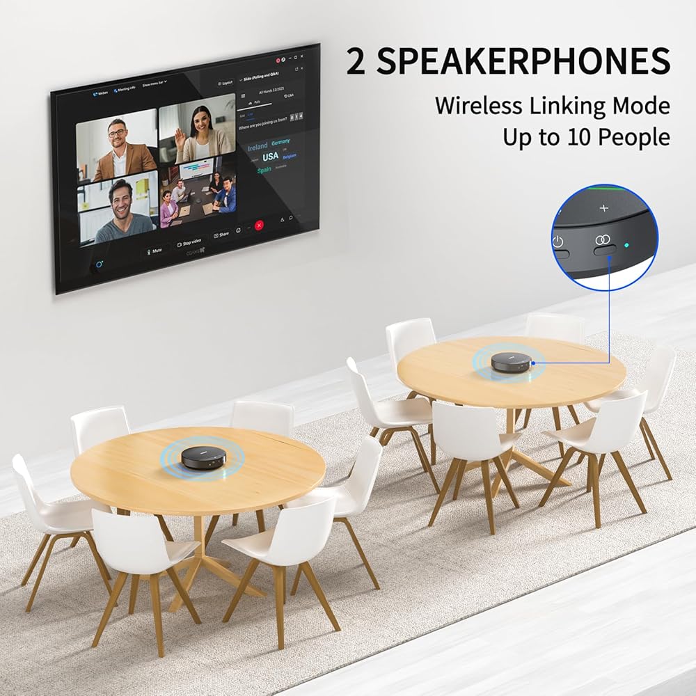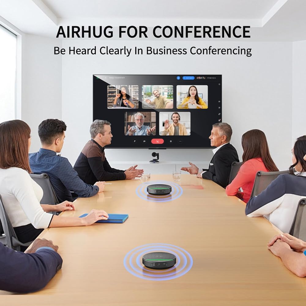 【Support Dual Speakeprhons Mode 】Whether you're using it alone or two conference speakers, AIRHUG 12 speakerphone linking mode is perfect for different meeting spaces. It delivers superb audio for collaborative conferences, making it easy for 8 attendees or more to hear louder voices in a large conference room.