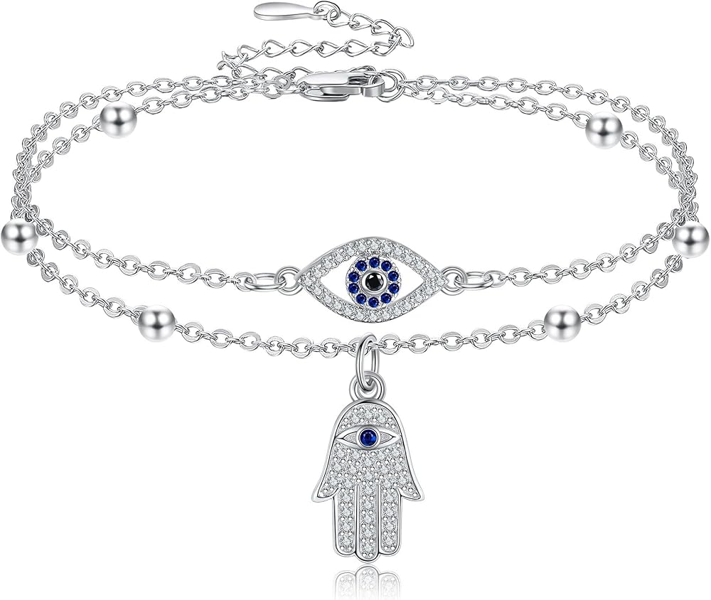 🧿 Material: 925 sterling silver Evil Eye and Hamsa Anklet, hypoallergenic, tarnish resistant,nickel-free,lead-free,cadmium-free,suitable for long-term wear,not contain any allergic element.