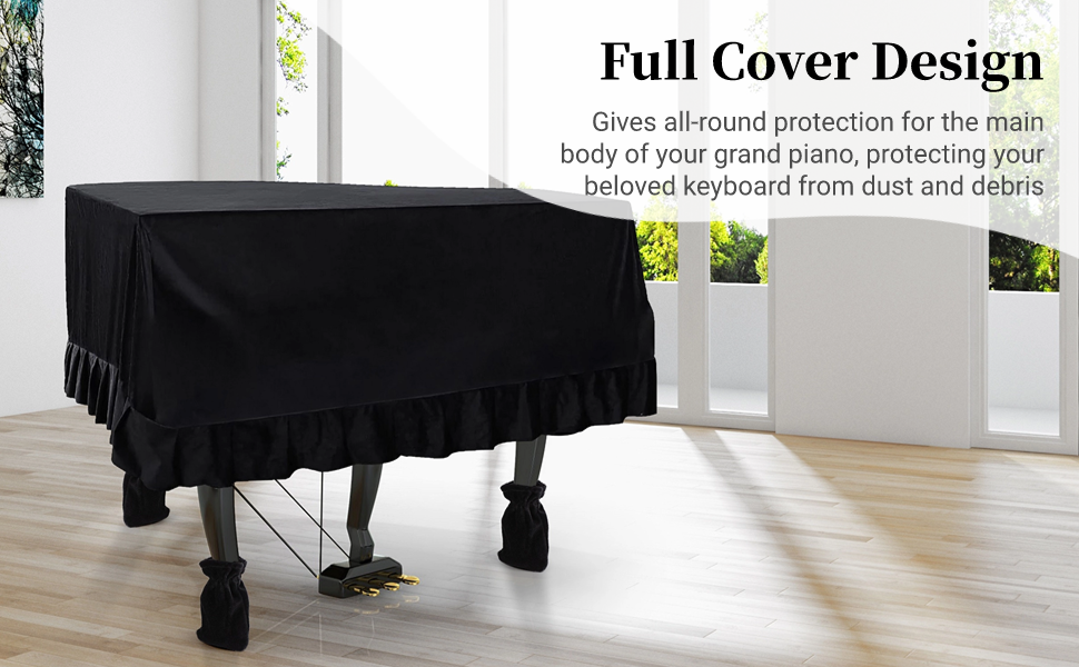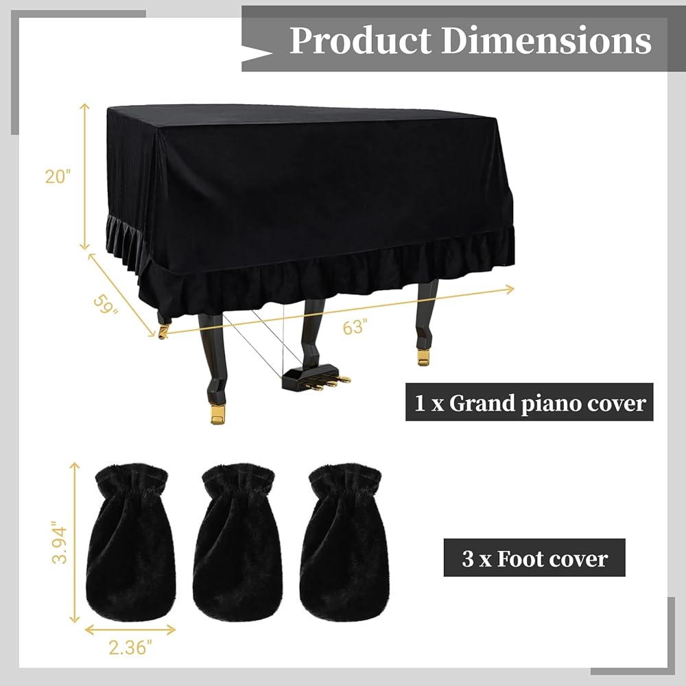 【قماش مخملي ناعم ومقاوم للغبار】 مصنوع من نسيج مخملي فاخر، طقم غطاء البيانو الكبير الخاص بنا ليس فقط ناعمًا ولطيفًا عند اللمس ولكنه أيضًا متين للغاية. إنها تحمي البيانو الكبير الخاص بك بشكل فعال من الغبار والرطوبة، مما يضمن بقاءه في حالة جيدة لسنوات قادمة.