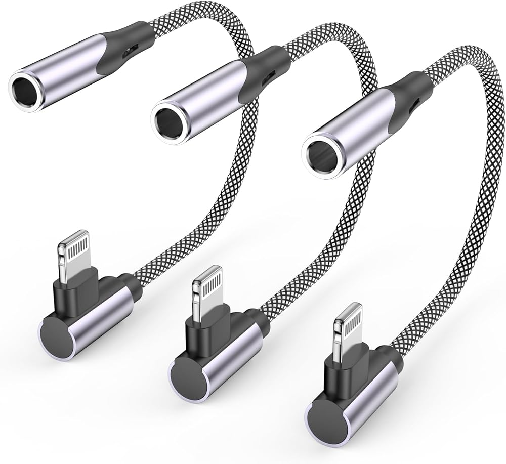 3 Pack 90 Degree Lightning to 3.5 mm Headphone Jack Adapter