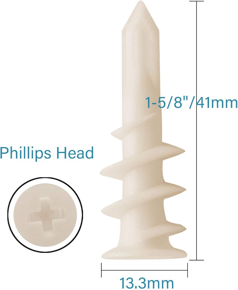 Scientific Design-- Deep thread design provides strong engagement in 3/8", 1/2" or 5/8" gypsum wallboard. Large anchor maximum bear weight: 50lbs.