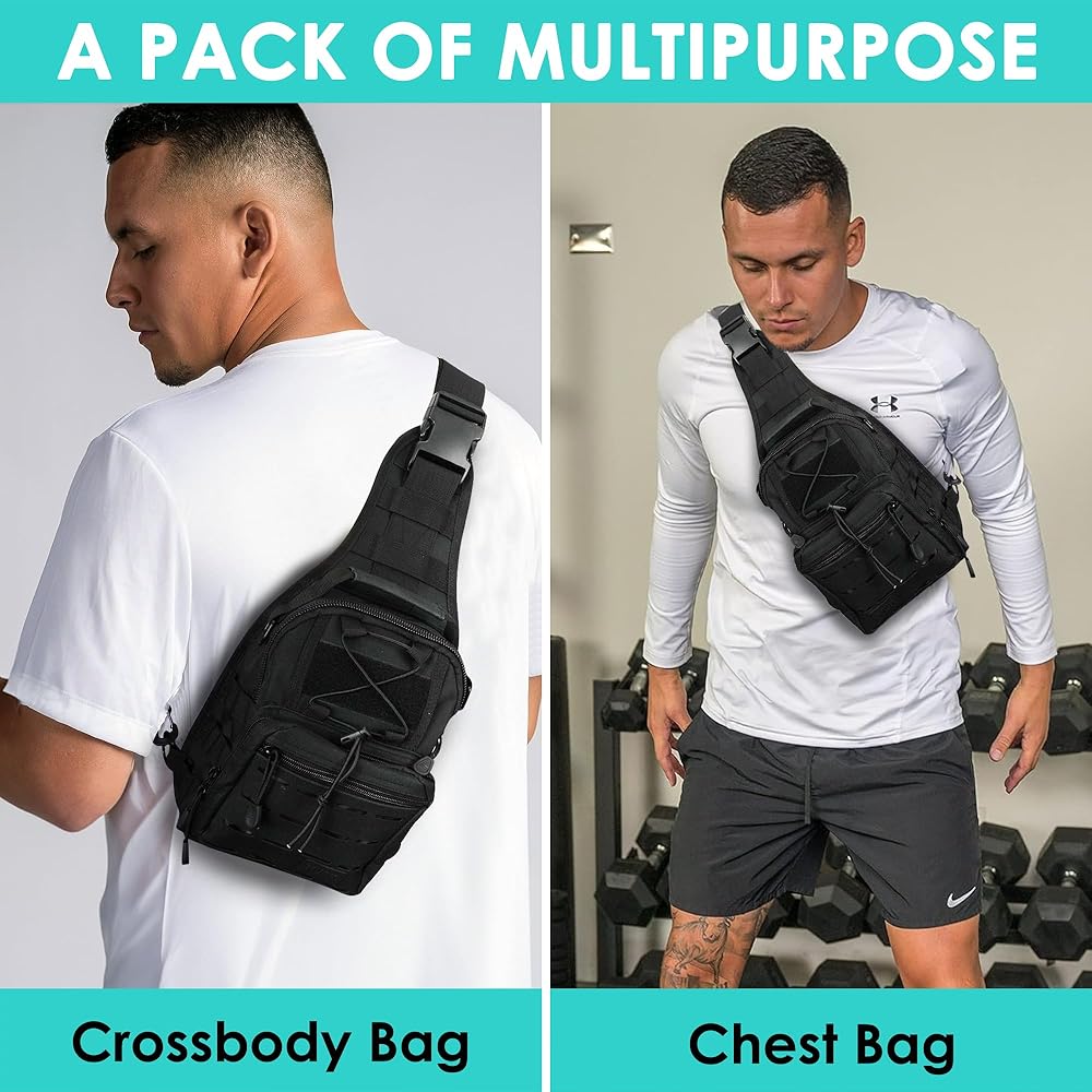 RUGGED SLING CROSSBODY DAYPACK: Crafted from durable, weather-resistant nylon fabric, our crossbody pack offers ample storage space with multiple compartments, internal pockets for organization, and a dual-zipper setup for easy access to your equipment. Designed with versatility in mind, it provides options for back sling, chest sling, or shoulder carry, making it an ideal choice for individuals of any gender seeking a reliable daypack.