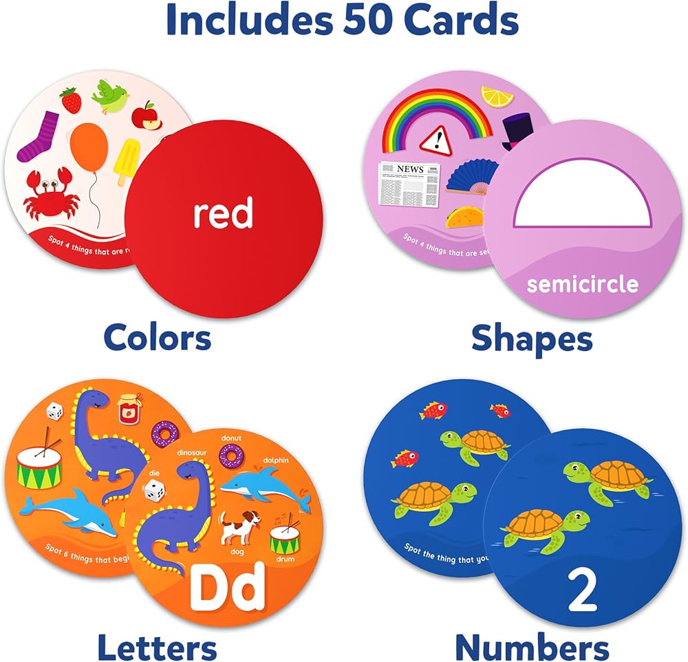 EDUCATIONAL LEARNING FUN: Engage your curious toddler with Skillmatics' Spot & Learn action cards! This multi-sensory set of flashcards helps your child learn letters, numbers, shapes, and colors and tests their vocabulary and observation skills with exciting "spot the correct object" challenges!