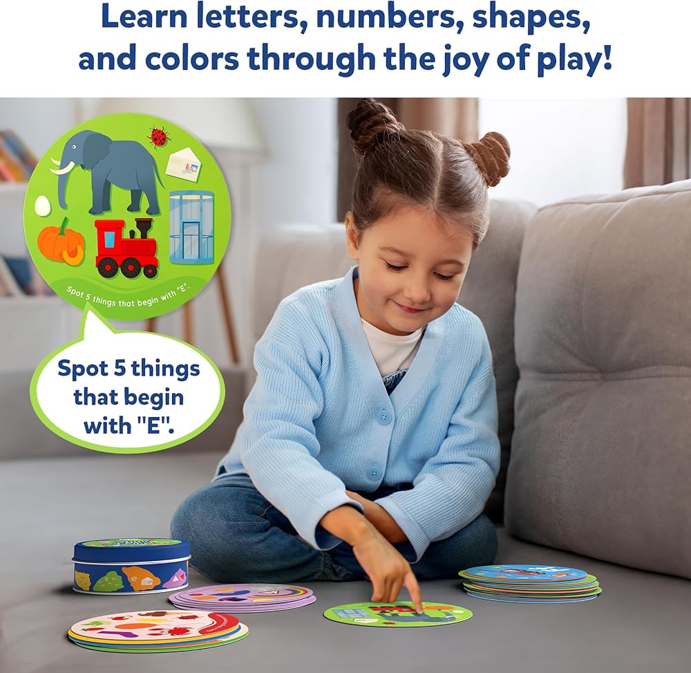 LEARNING ON THE GO: The flashcards feature vibrant illustrations that promote visual development and feature easy-to-read text. Packaged in a convenient tin, they are perfect for on-the-go fun and learning, with cards measuring 5" in diameter.