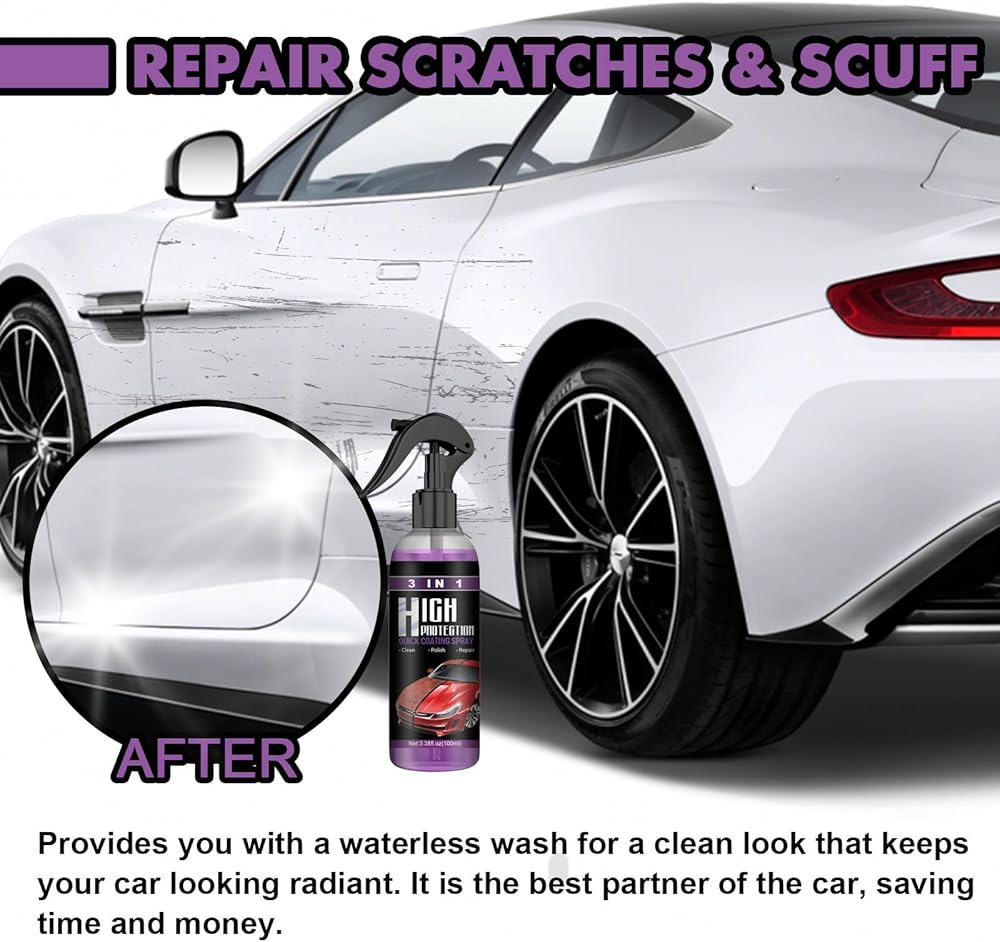 3 in 1 High Protection Quick Car Coating Spray, Multi-Functional Coating Renewal Agent, 3 in 1 Ceramic Car Coating Spray, Quick Coat Car Wax Polish Spray for Cars, Easy to Use (100 ML, 3PCS)
