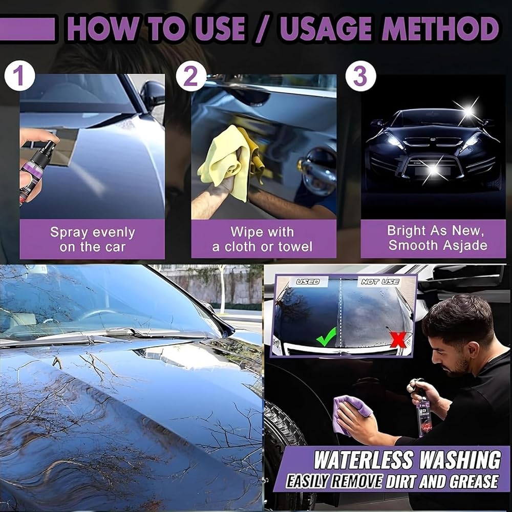 【Easy And Quick Waterless Wash】Just Spray It On Your Car Paint, It Will Eliminate Dirt, Grime, Bird Droppings, Bugs, Mud, Dust, Grease, And Stubborn Stains Instantly On Contact, Saving Time And Money. No More Tedious Car Washing.