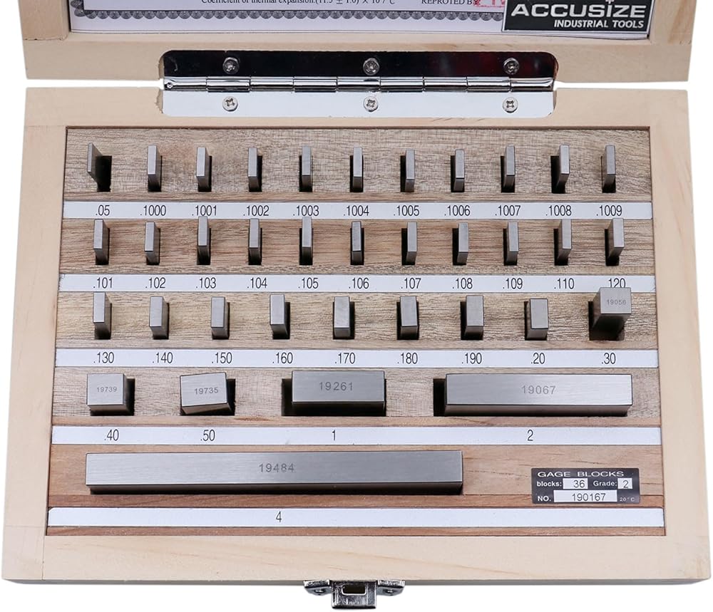 Accusize Industrial Tools 36 Pc Steel Gage Block Set, Grade As-2 Asme B89.1.9-2002, with Mfg Certificate, 0036-6001