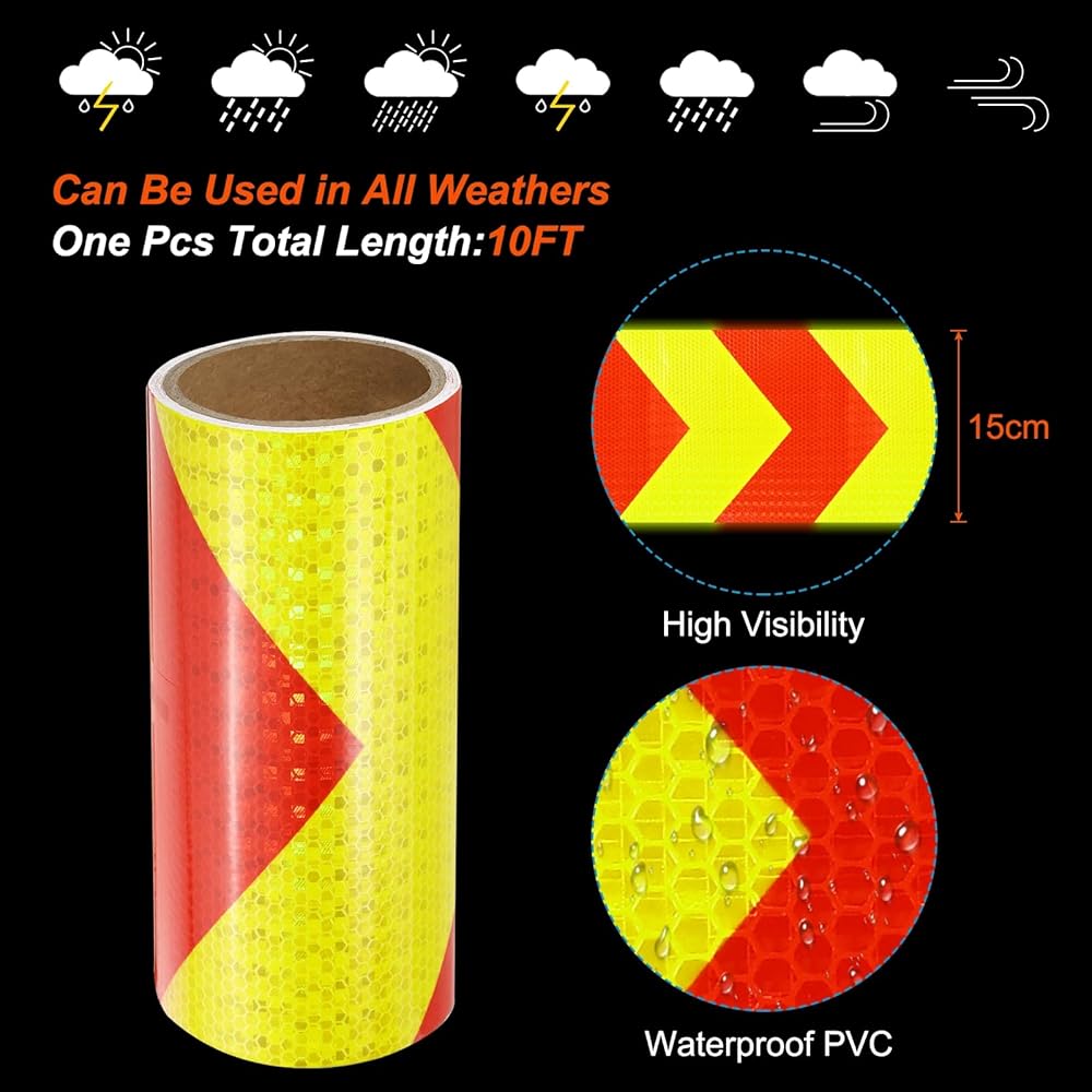 Color: Fluorescent Yellow Red; Overall Size: 3 Meter x 15cm / 10 ft x 6 inch (L*W); Packing List: 1 x Reflective Tape