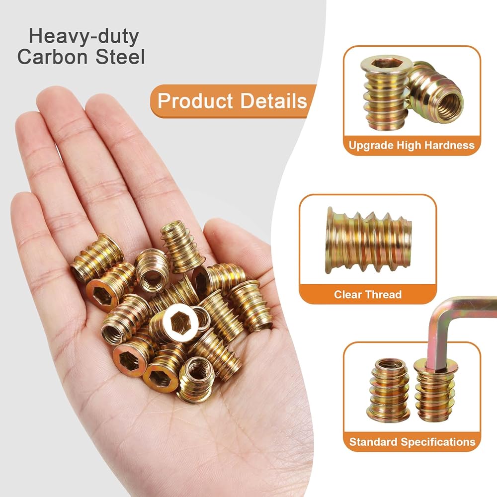The threaded inserts are very easy to install, just drill a suitable size hole and install the Nuts using the included Hex Spanner.