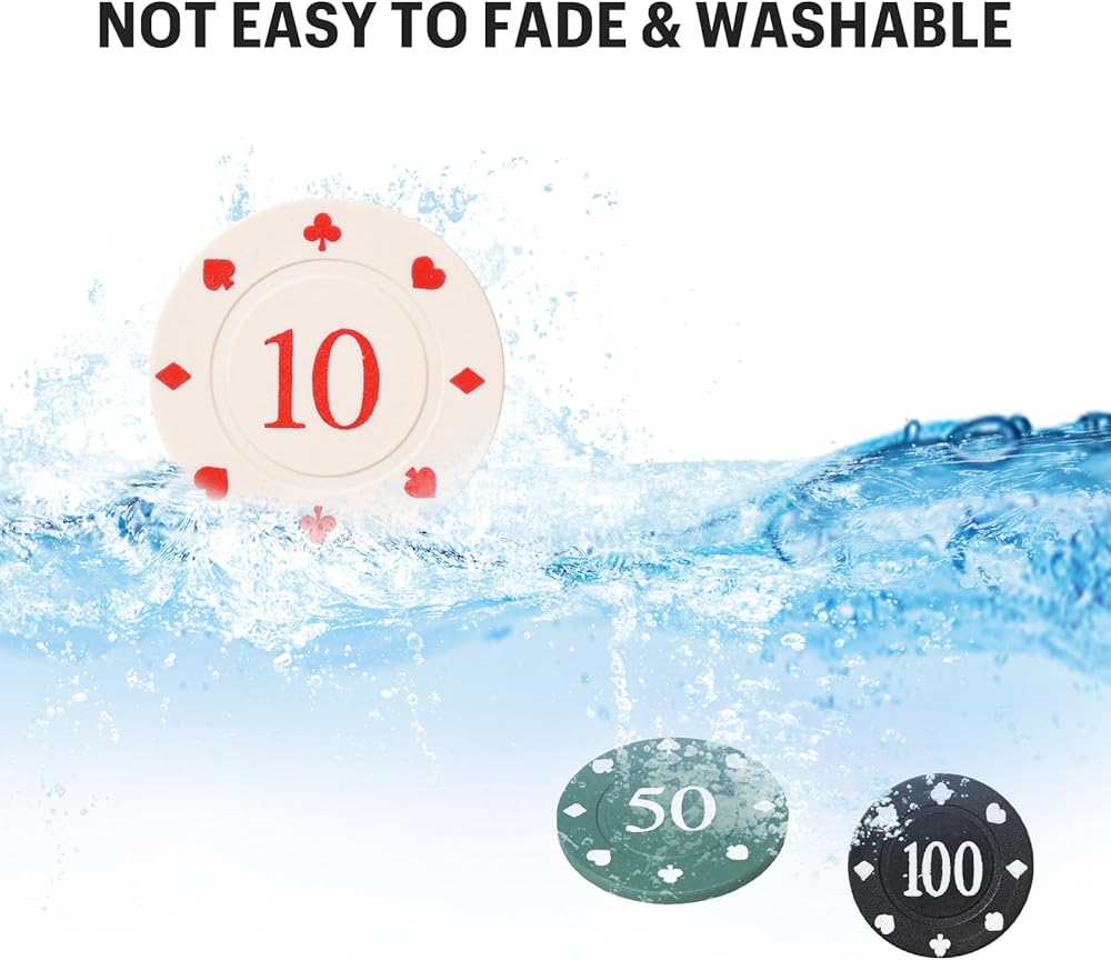 Quality Materials: Our professional poker chips is mainly made of PP. It is exquisite in workmanship, delicate texture, comfortable feel, and is not easy to fade, rupture or deformation. It can be used and washed multiple times. You can use it with confidence.