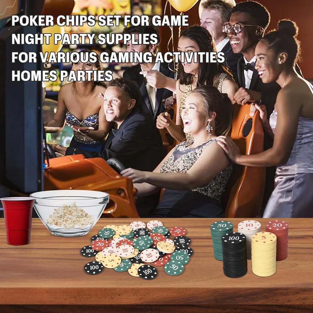 Poker Chips, Denomination Poker Chips Set with Storage Box, Plastic Chips for Games, Colorful Poker Chips, Poker Chips 100, Counting Chips, Mini Poker Chips for Homes Casino Card Games(5/10/20/50/100