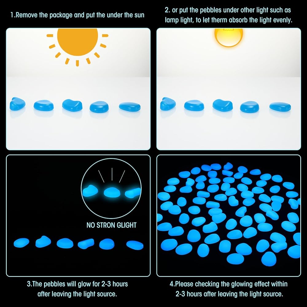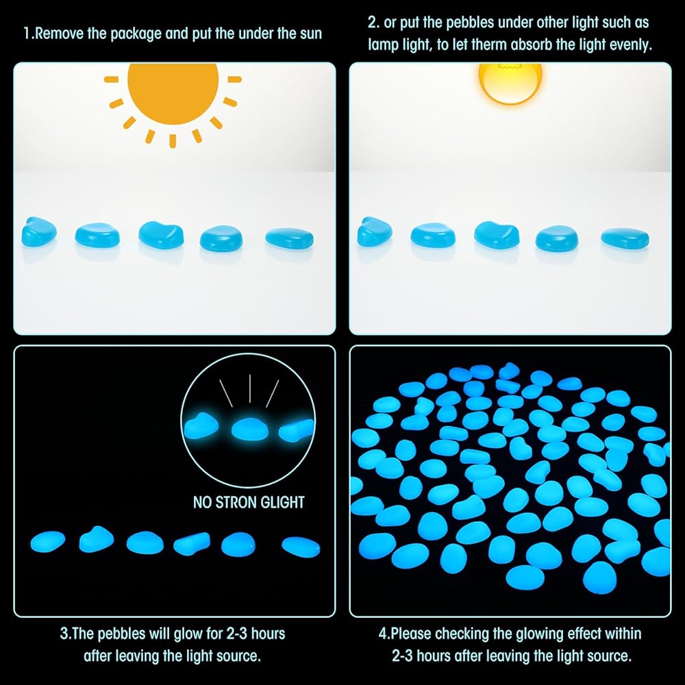 With these glow in the dark pebbles, you hold the freedom to decorate in any shape or form imaginable. Enjoy making distinctive designs with family and friends and bring an added touch of creativity to special occasions such as Christmas, Halloween, and other festivals.