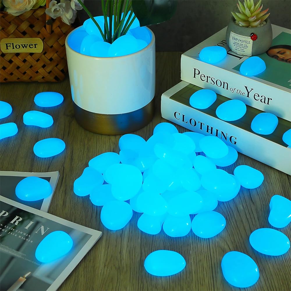 These glow in the dark stones can be applied in varied settings, both indoors and outdoors. They're ideal for sprucing up landscapes, walkways, paths, and backyards or to use as fish tank gravel or large aquarium rocks.