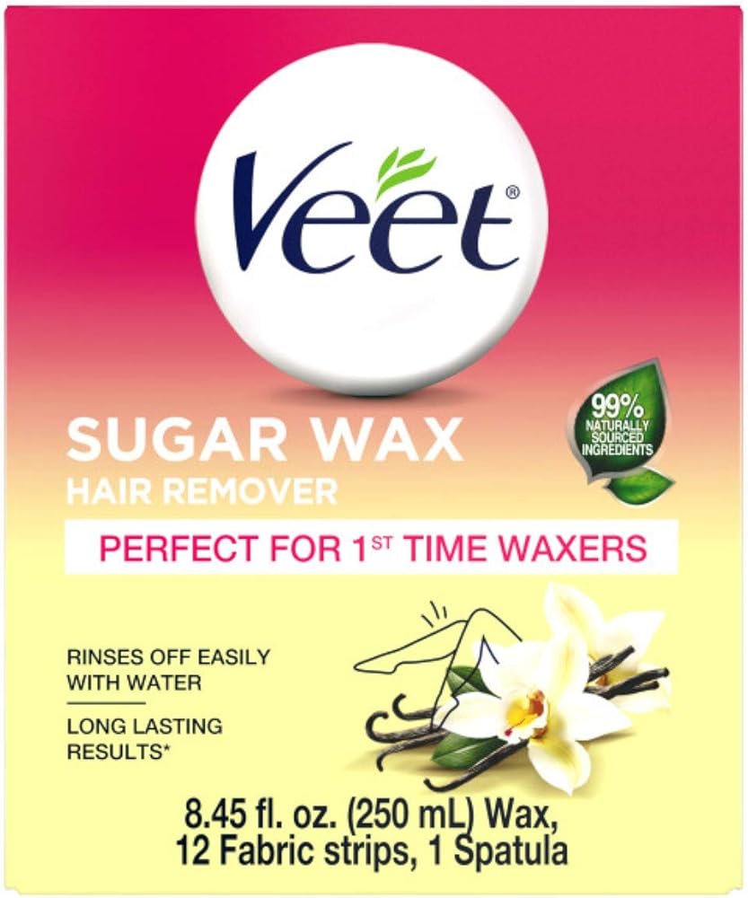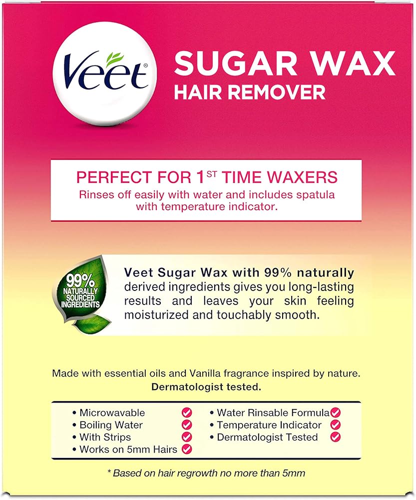 Hair Removal Wax- VEET Sugar Wax, Hair Remover Waxing Kit with Essential Oils and Floral Vanilla Fragrance, 250ml Wax and 12 Fabric Strips with 1 Spatula (Pack of 2)