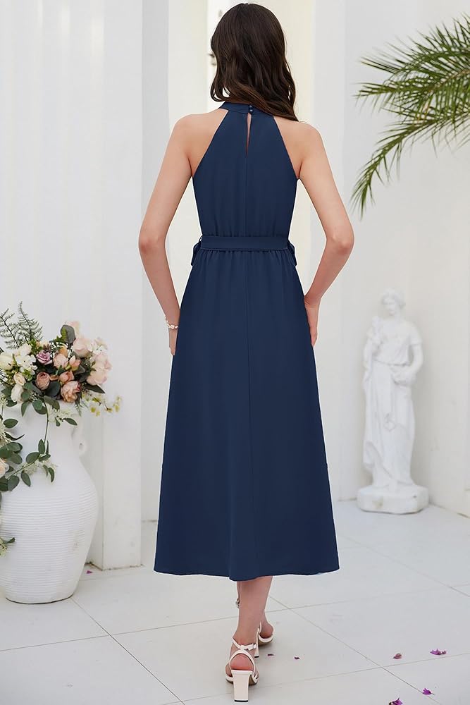 Matches: GRACE KARIN's sleeveless halter midi dress with belt is easy to pair with heels or sandles for a fantastic look in summer. Grab a clutch, and you are ready for party.