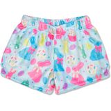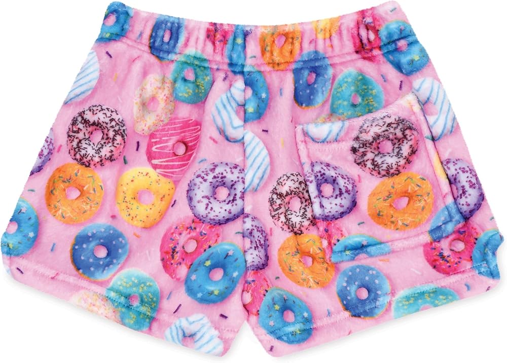 It doesn't get any more soft and cuddly than this! These silky plush shorts are just the thing for getting comfy and cozy - and the fun prints make them anything but a yawn! These casual shorts feature a back patch pocket and are perfect for comfortably doing homework, watching tv, hanging with friends at camp or just chilling out in your own unique way! Extra soft, super silky machine washable fleece is 100% polyester for easy care. Available in children's sizes X-Small (4-6), Small (6-8), Medium (10-12) and Large (14).