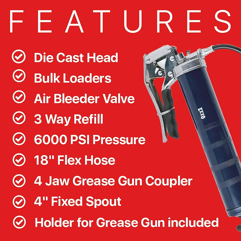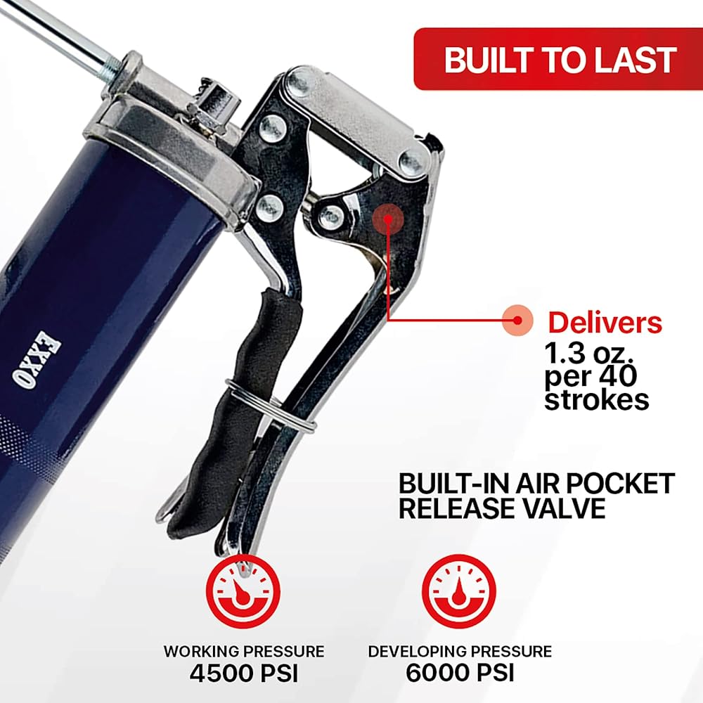 When you need heavy duty, premium tools and accessories choose Exxo. Our high quality pistol grip grease gun is perfect for mechanic use for a sticky gear, wheel or bearing. Exxo Tools is a hand tool manufacturer that offers engineering excellence for the world's most demanding industries. Our products include industrial, tools, precision tools, cutting tools and more. As a leader in the tools manufacturing industry, we always focus on quality and customer satisfaction.