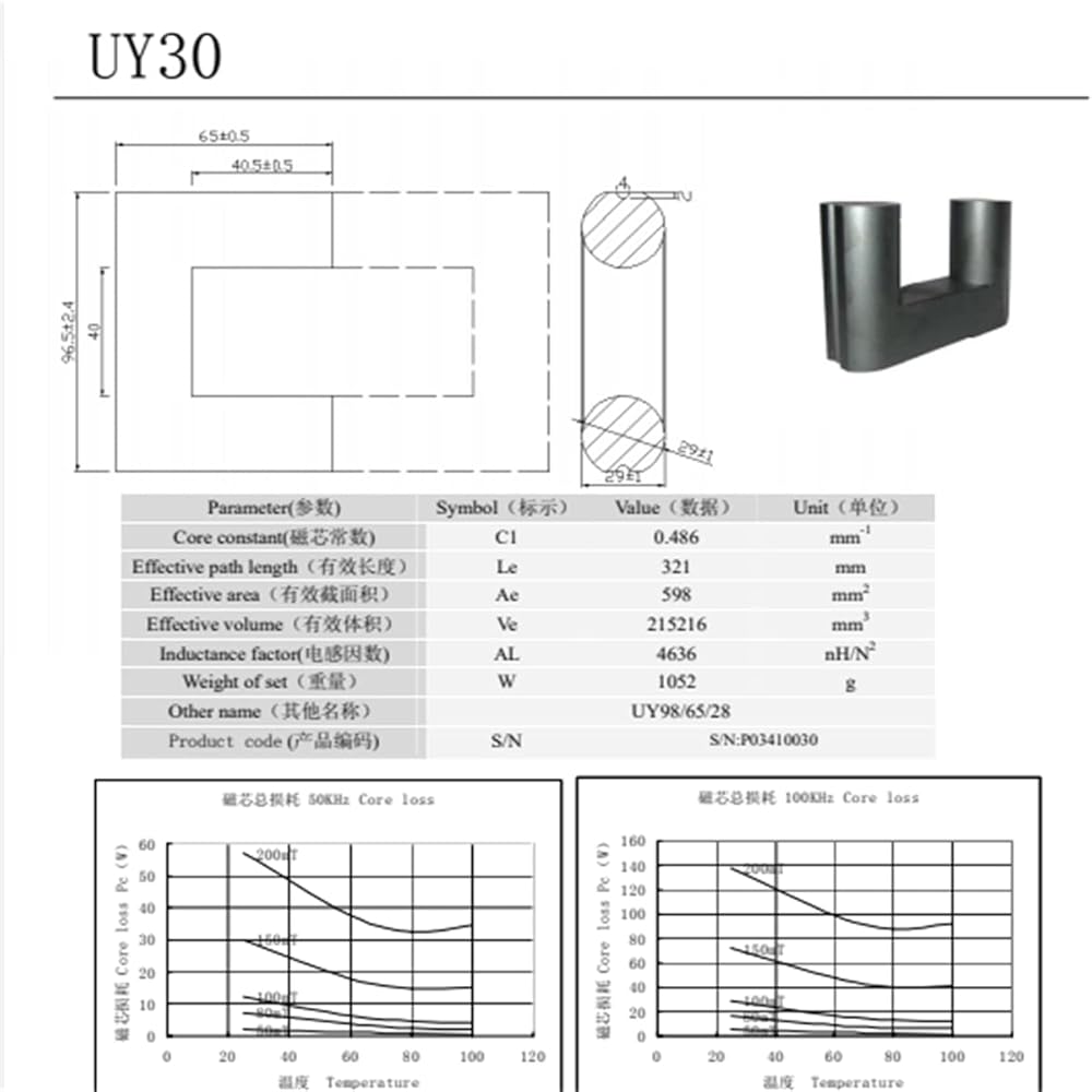 1pair UY30 Al 4636NH/N2 Ultra Large Power Transformer Core UY98/65/28 UU Isolator Ferrite Core Chokes Ferrite Bead MnZn PC40