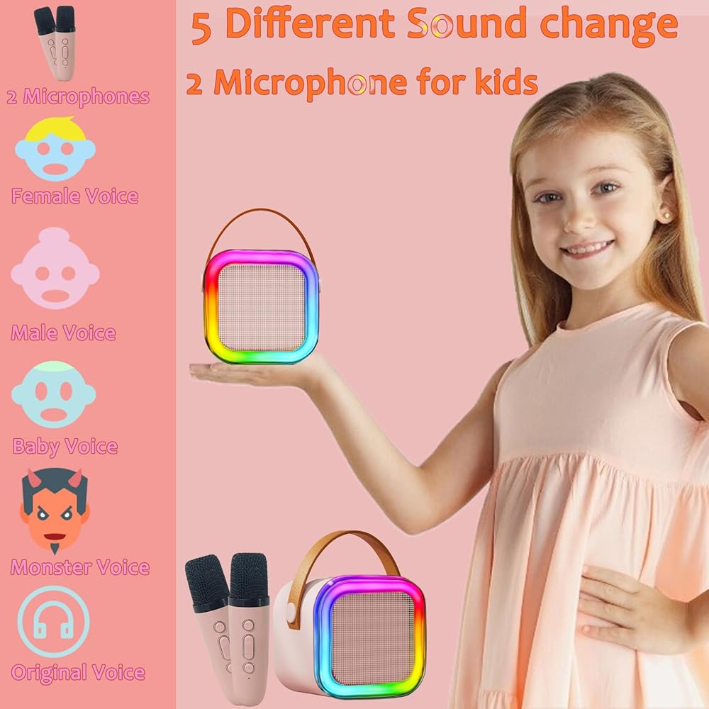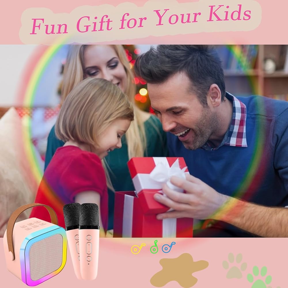 【Ideal karaoke machine for kids】Our kids karaoke machine has rainbow lights with 2 wireless microphones. It's perfect toy for girls/boys, as well as best birthday gift for kids aged 4, 5, 6, 7, 8, 9, 10, 11, 12 and teens.