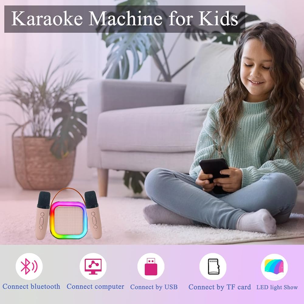 【Multi-function karaoke machine】This kids karaoke machine has a built-in Bluetooth chip to ensure instant pairing, stable transmission, and long-distance connection. Support TF card, and USB connection. Compatible with PCs, tablets, mobile phones. Create a truly versatile karaoke experience for you.